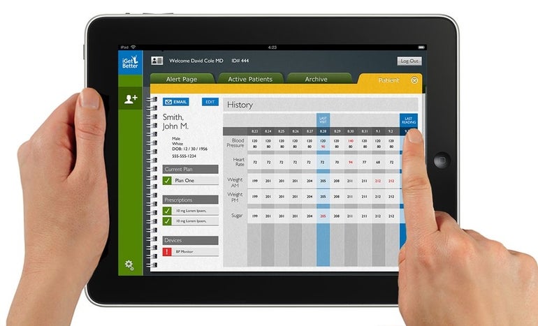 iGetBetter works via patients’ smartphones, or through iPad minis issued by the company, for patients who don’t use smartphones. Doctors assign patients a care plan and are given a weight scale and blood pressure cuff, both of which communicate metrics to the iGetBetter cloud through the mobile device. Patients also receive daily instructions, and any sign of health complications, such as increased blood pressure or weight gain from fluid retention, result in an alert to the doctor.