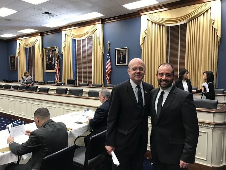 The owner of a folk art company in Sutton joined Congressman Jim McGovern in Washington on Tuesday to discuss his needs as a small business owner with a congressional committee.
