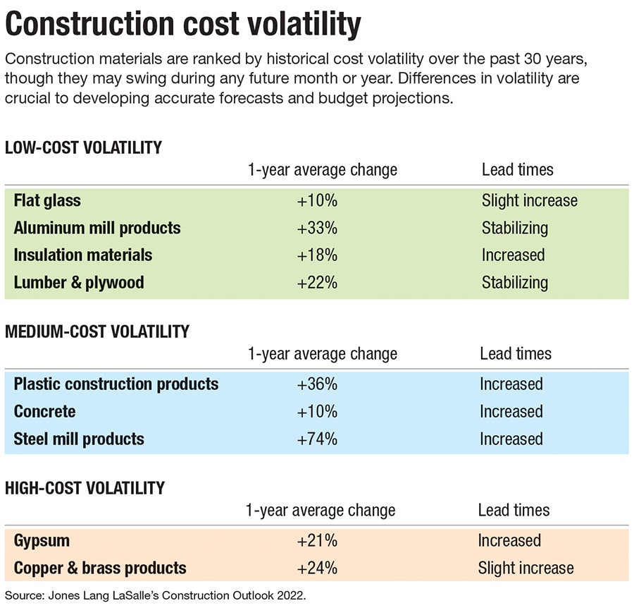 Fontaine remembers dramatic price increases in 2009–2011 for materials like gypsum board and steel, but commodities have stabilized. But now, he said, constant increases in things like steel, copper, and PVC conduit have been underway for 18 months or so, with no sign of cooling.