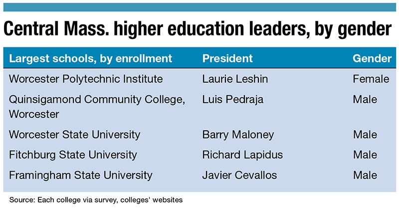 In higher education nationally, 60% of professionals are women, according to the College and University Professional Association for Human Resources. Yet, in Central Massachusetts, 40% of college executives and board of trustees members are women. Of the 15 colleges based in Central Massachusetts, three have female presidents, and two of those are leaving at the end of the spring semester.