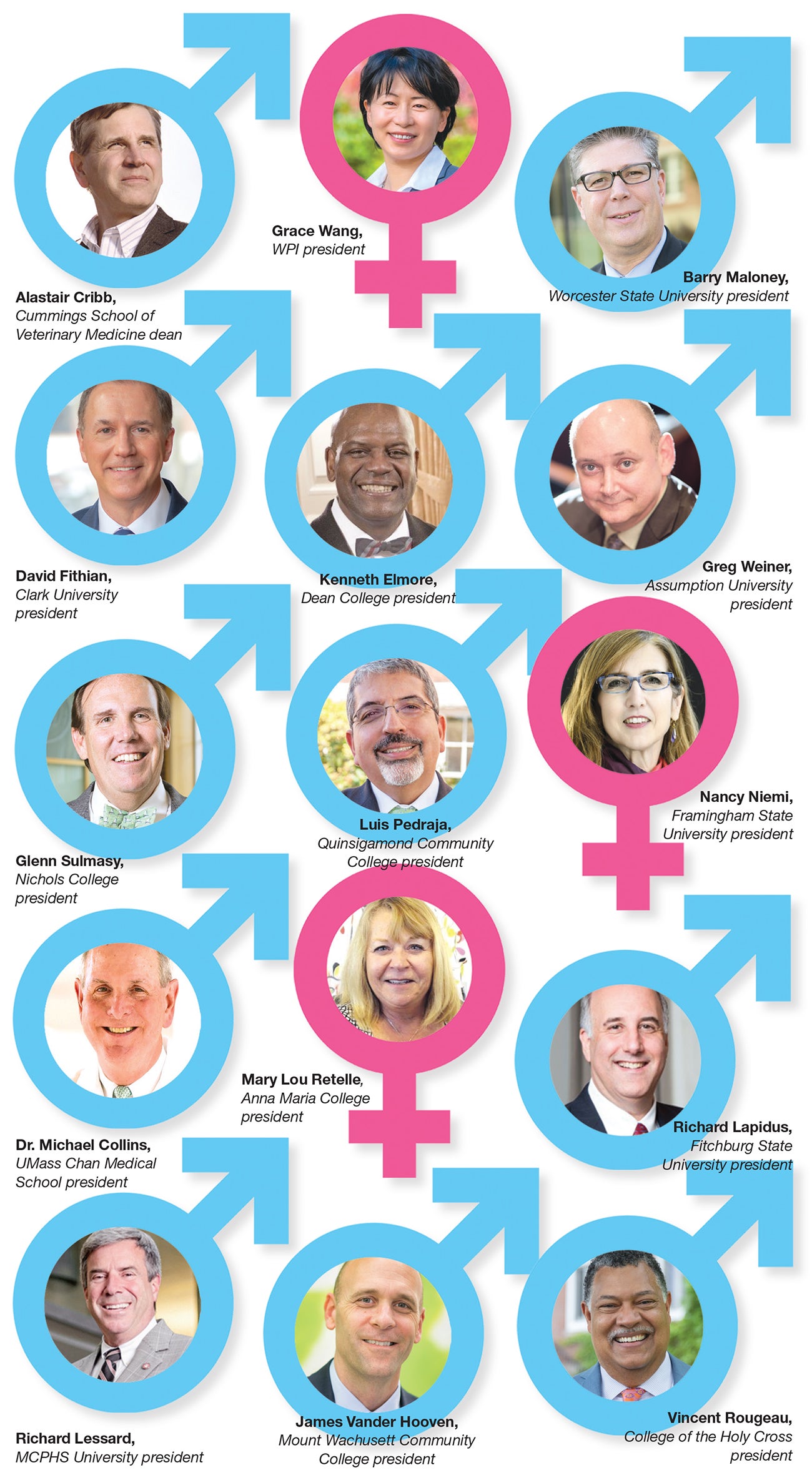 Of the 15 colleges and universities in Central Massachusetts, Wang is one of three female presidents, along with Nancy Niemi of Framingham State University and Mary Lou Retelle of Anna Maria College in Paxton.