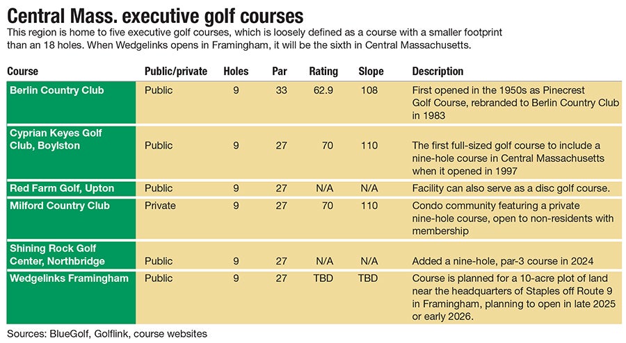 Golfers seeking short courses in Central Massachusetts are set to have one more option soon, as a former executive at Acushnet Co., the Fairhaven-based company behind the Titleist and FootJoy golf brands, is planning on opening a nine-hole, par-3 course in Framingham.