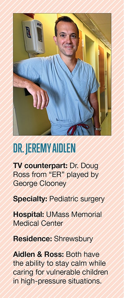 Elsewhere at UMass, pediatric surgeon Dr. Jeremy Aidlen reminds some of his colleagues of a very different TV figure, pediatrician Doug Ross from the medical drama “ER,” famously played by George Clooney. Like Ross, Aidlen has the ability to stay cool while performing serious medical procedures on young children.