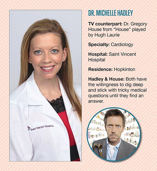When Dr. Michelle Hadley, a cardiologist at Saint Vincent Hospital in Worcester, was asked which TV doctor she most resembled, she went to her patients. They suggested Dr. Gregory House, the brilliant and troubled diagnostician from the show “House.”