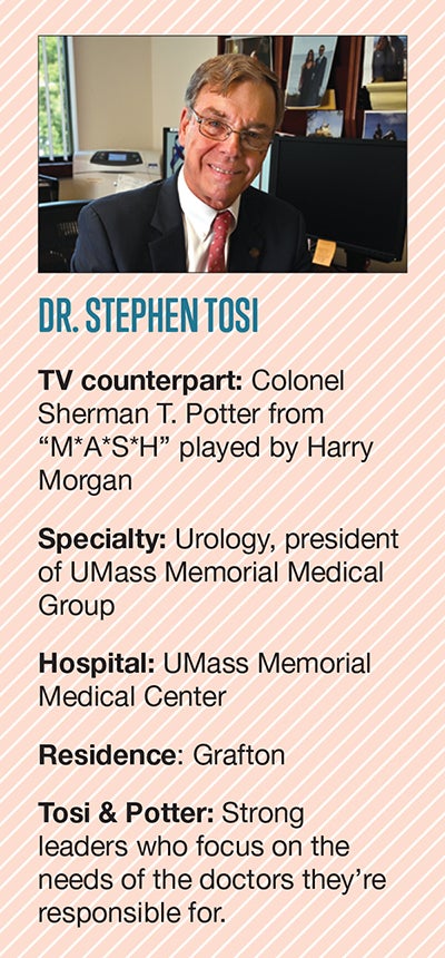 Still, even serving as the head of a large, multi-campus organization in Worcester, Tosi embodies much of the same spirit as Colonel Potter, helping to keep his doctors in good spirits despite the difficult, stressful nature of their jobs.