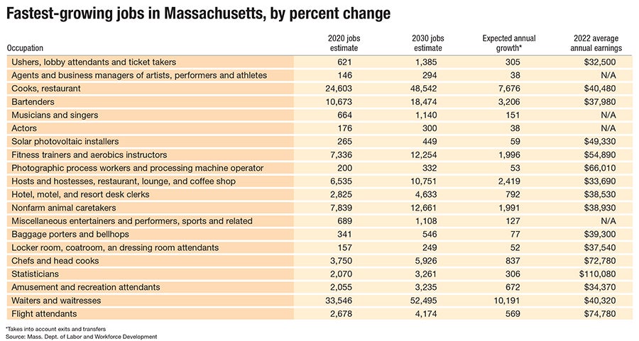These are the fastest growing jobs in Massachusetts, according to the Mass. Department of Labor and Workforce Development.