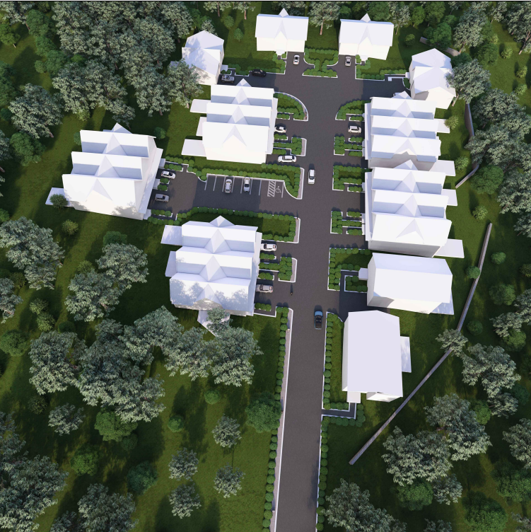 Both plans call for the construction of a shared driveway through the middle of the development and the inclusion of six-to-eight visitor parking spaces. Each proposed unit would have its own one-car garage, as well as a deck in the rear of each unit and a porch in front.