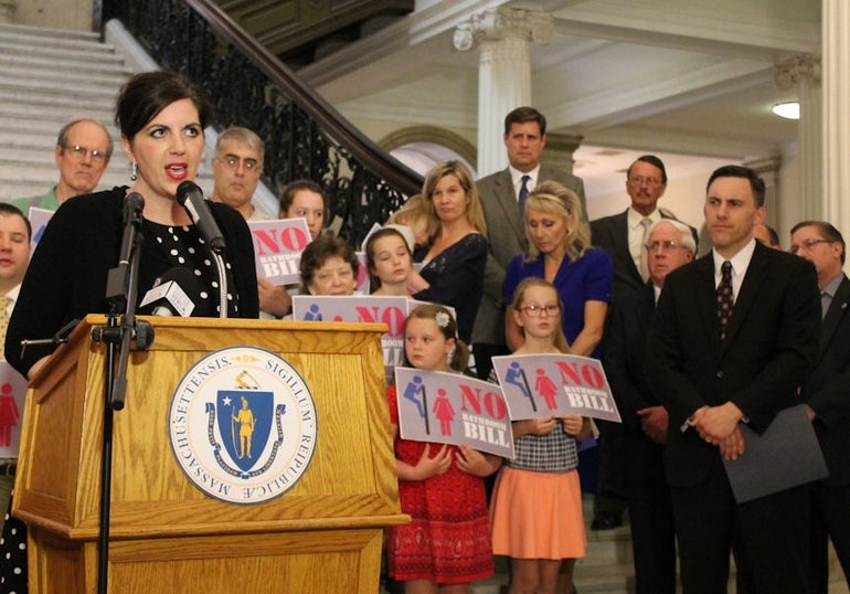 Rep. Shaunna O’Connell, a Taunton Republican, said that the law’s vague definition of gender identity would make “bathrooms and locker rooms basically a free-for-all” for people with “nefarious intentions.”