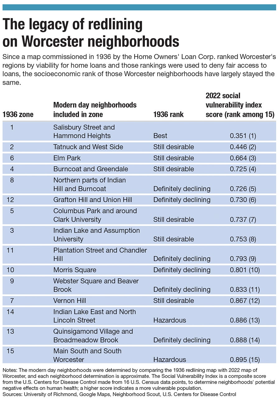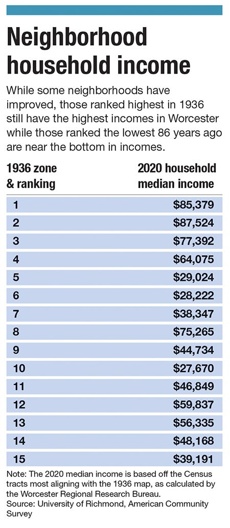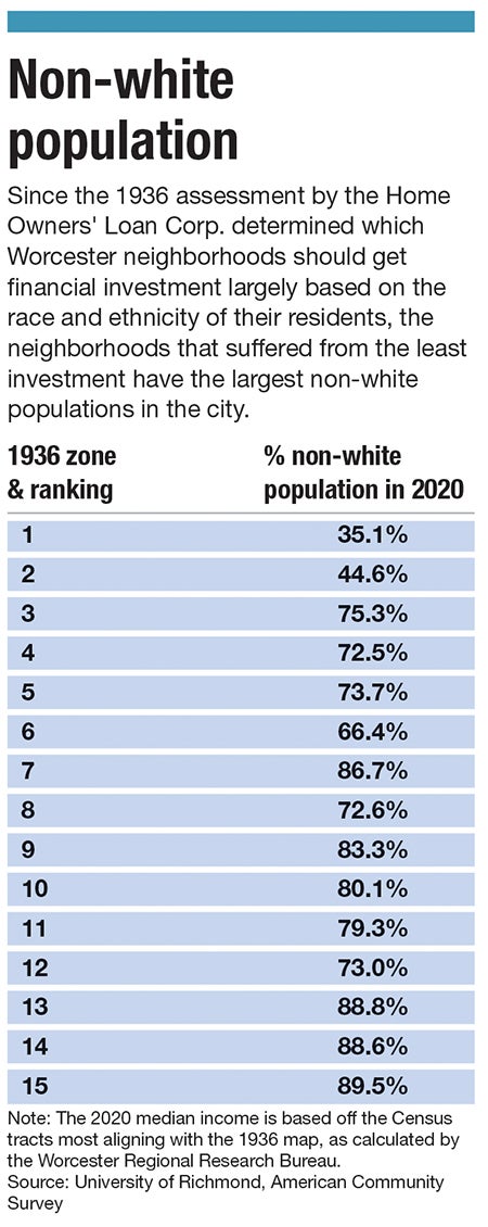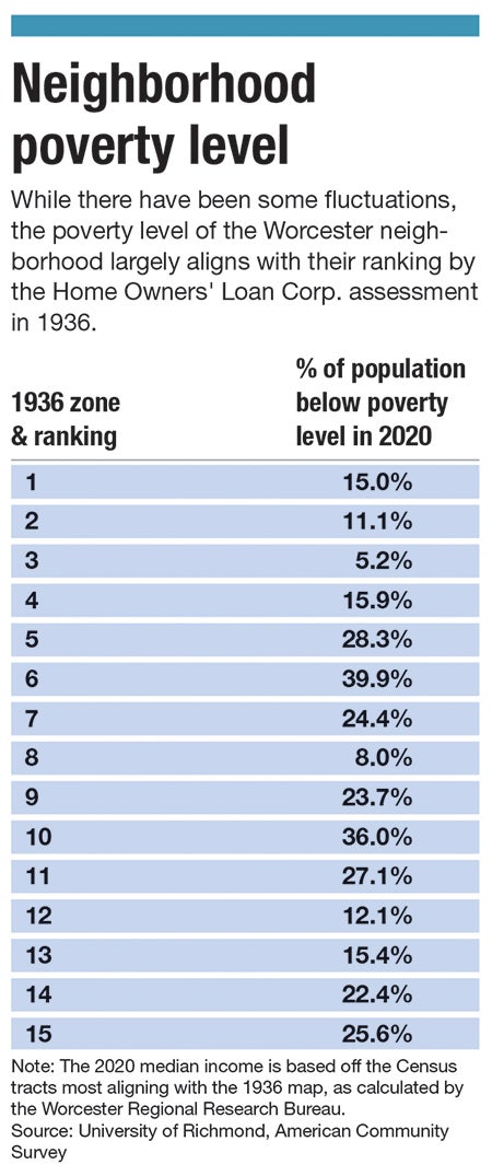 Since these cycles have compounded problems in Worcester’s neighborhoods over the past 86 years, the redlining map largely hasn’t changed.