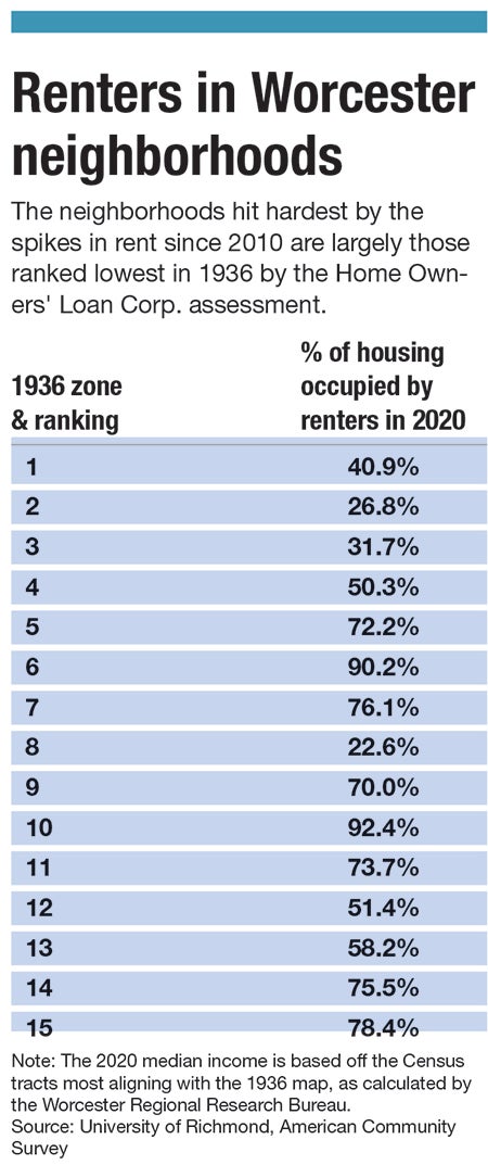 In 1936, seven white men judged which neighborhoods of Worcester were not viable for real estate financing. Today, as rising costs overburden half of renters in the city, those impacted the most are from those neighborhoods still suffering from lack of investment.
