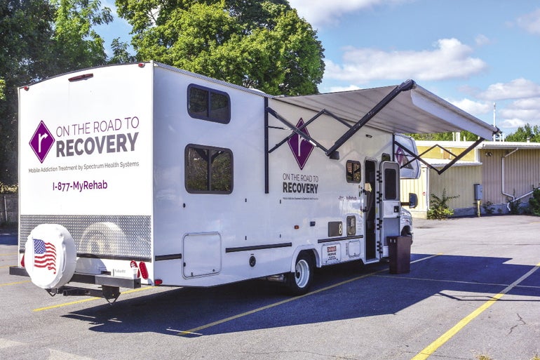 The van is Spectrum Health’s mobile service for opioid-use disorder treatment, a program the mental health and substance abuse treatment provider launched in late February, offering same-day treatment seven days a week for those seeking medication-assisted opioid recovery treatment.