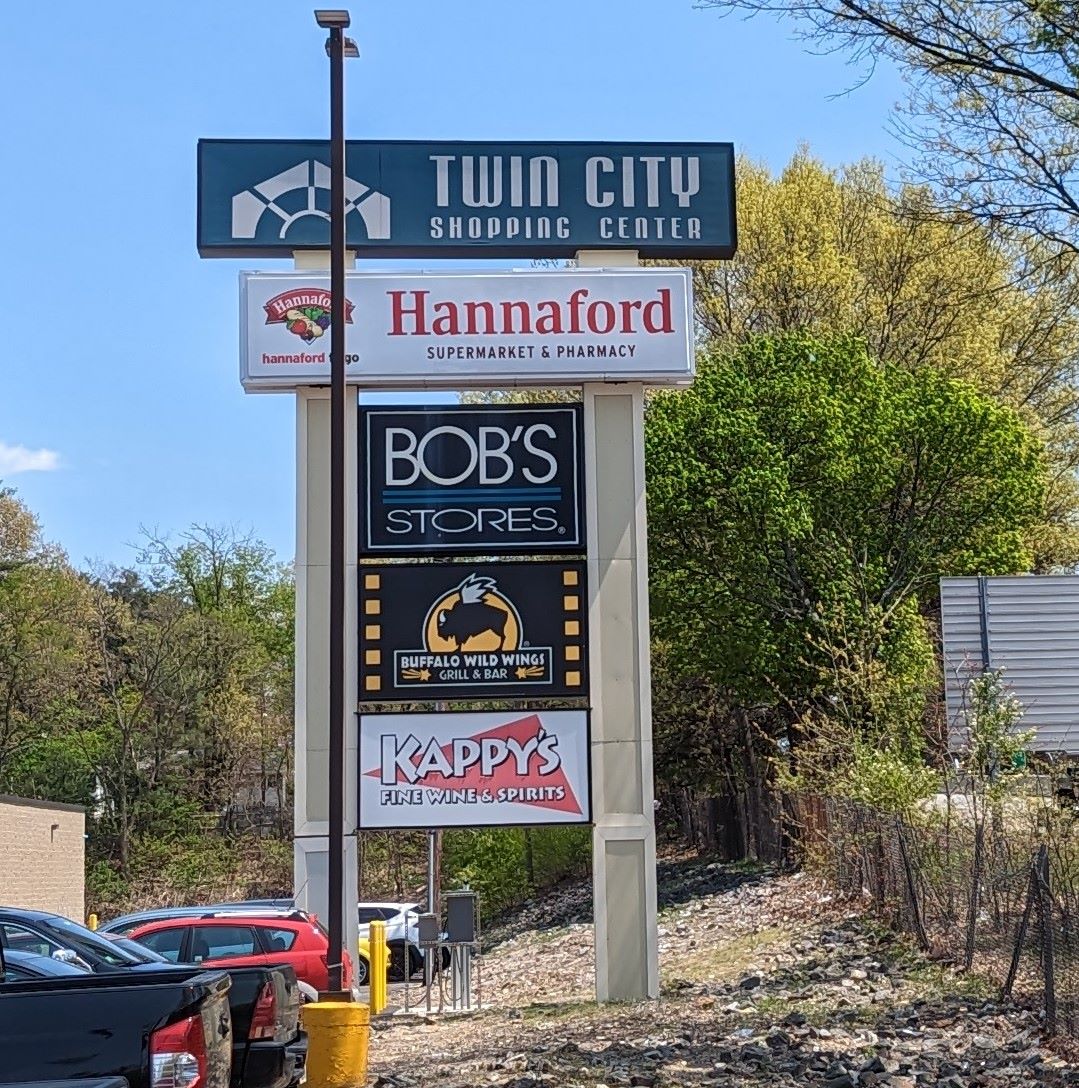 Twin City Shopping Center is home to a Hannaford supermarket, and a Bob’s Stores Footwear & Apparel, among other retailers, offices and restaurants. The is one large anchor location that is vacant and available for lease, according to a sign on the building.