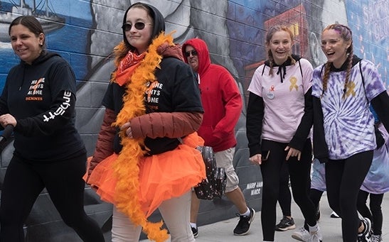 Jennifer Wood of Team Walking Together first took part in the UMass Cancer Walk and Run in 2017 in honor of her father, David Tatro, who was diagnosed with stage 4 metastatic squamous neck cancer that year and given six months to live. He took part in a clinical trial at UMass Chan and has been in remission for five years.