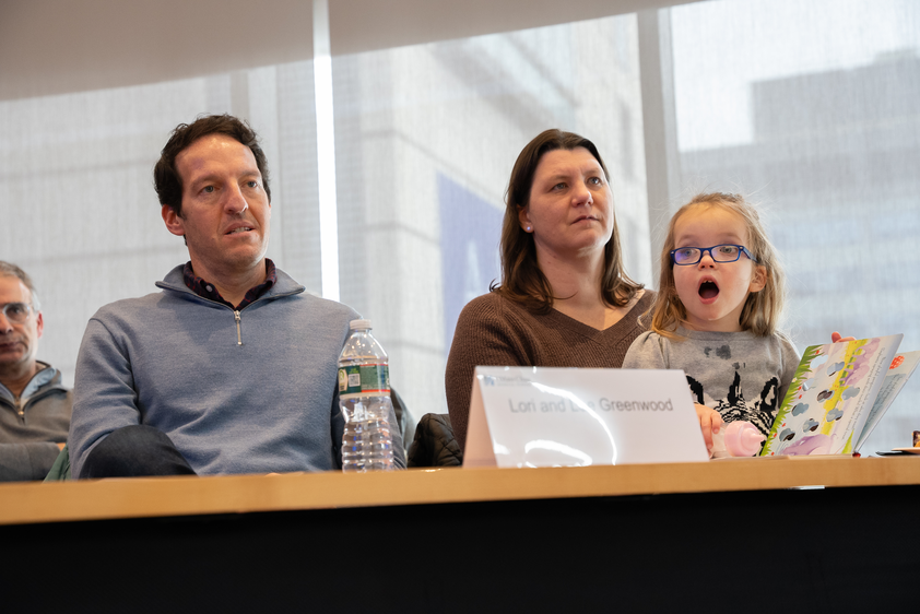 “None of this is possible,” said Lee Greenwood, Noa’s father. “She would likely be on a feeding tube. She would certainly not be sitting here, reading her playful penguins book. She wouldn’t be speaking. She wouldn’t be in Boston Public School. None of that would have existed but for intervention of the clinical trial and that gene therapy was developed right here.”
