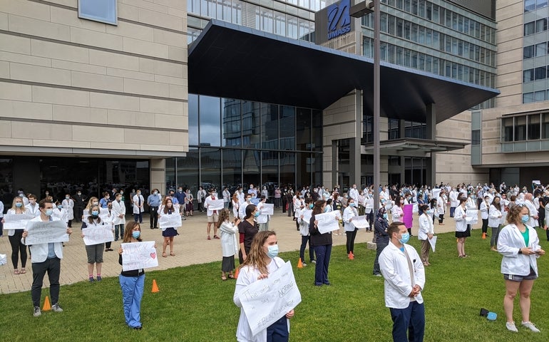 UMass Memorial Health Care and UMass Medical School held their own rally called White Coats for Black Lives on June 5 as part of the nationwide effort to end institutional racism. Johnson was among the more than 100 participants at that rally.