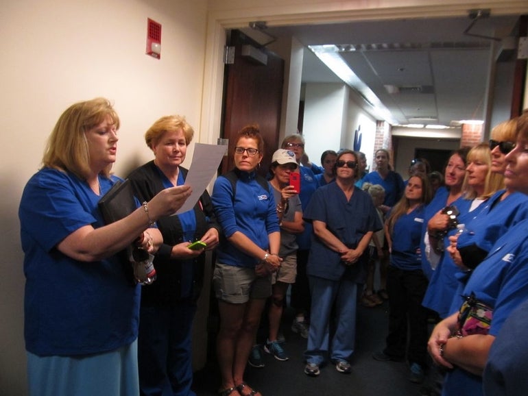 “Do not let patient safety and quality care be a casualty on the road to solvency,” said Colleen Wolfe, an RN at the Memorial and Hahnemann campuses.
