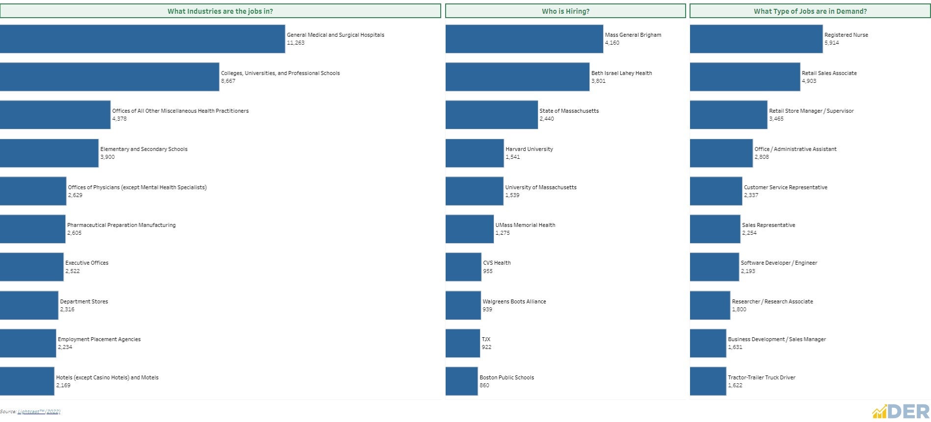 The most in-demand job in Massachusetts is registered nurse with 5,914 postings in September. Retailers are gearing up for the holiday season, posting 4,903 jobs for associates and 3,465 postings for store supervisory positions.