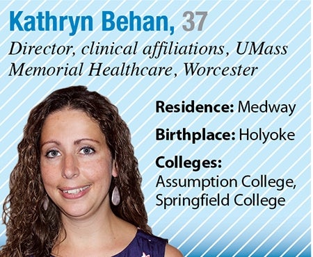 Kathryn Behan, who is responsible for leading strategic planning for Worcester-based UMass Memorial Health Care’s affiliation activities, is joined by three other winners hailing from the Central Massachusetts healthcare industry in this year’s 40 Under Forty awards.