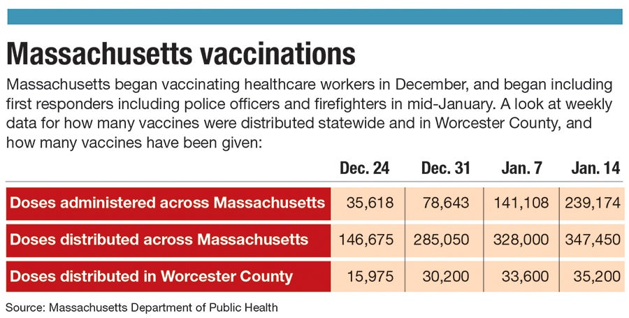 Worcester’s Senior Center is one of 19 locations statewide where such large-scale vaccination efforts are taking place, along with Southbridge Community Center, HealthAlliance Hospital in Leominster, and Marlborough Hospital.