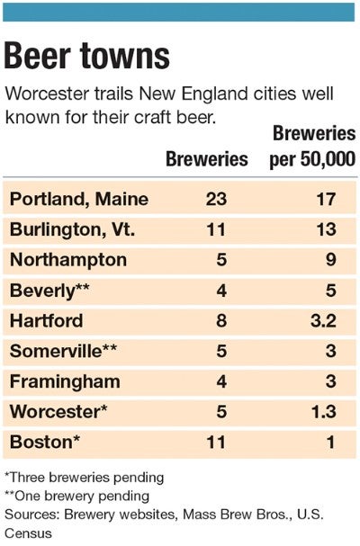 Despite the rapid increase of Worcester breweries, industry leaders say the city has room for several more before it is elevated to the status of popular beer towns like Portland, Maine and Asheville, N.C.