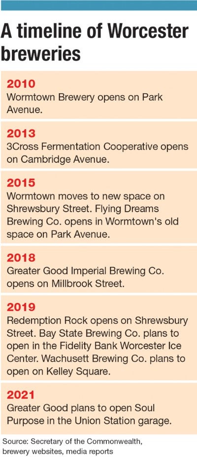 In less than a decade, Worcester went from having no craft breweries to five in 2019, and by 2022, at least eight brand names will produce beer within city limits.