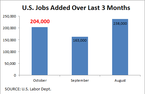 Analysts polled by Yahoo Finance had expected a job gain of between 85,000 and 110,000 jobs, as the partial shutdown of the federal government from Oct. 1 through 17 was believed to have stolen some of the momentum of the job gains that had occurred throughout the year. The jobless rate, meanwhile, was in line with expectations.