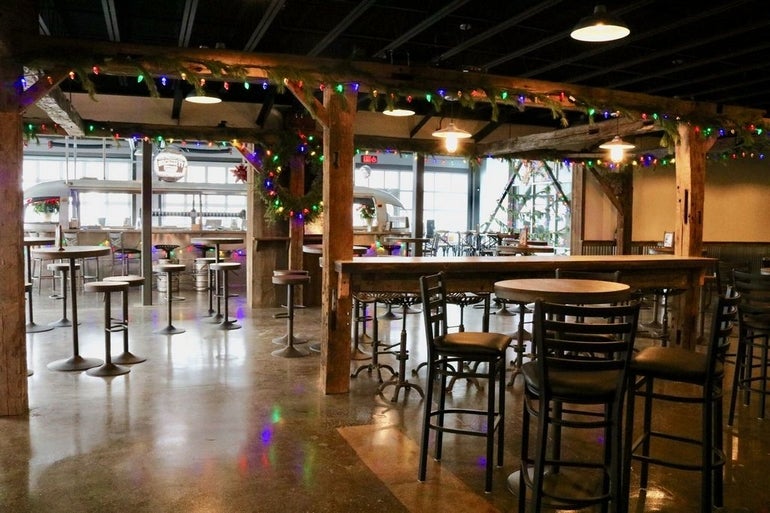 The brewery’s outdoor space opened for the first time this summer. Wachusett said it then took wood beams from a 200-year-old former dairy barn to help make the new space. Large glass garage doors open up the space to the outdoors when the weather cooperates.