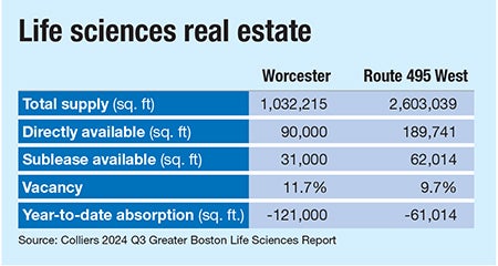 While both the presence of the industry and vacancy rates are smaller in Central Massachusetts when compared to the global hub of Greater Boston, the region’s prospects haven't been able to escape these trends.