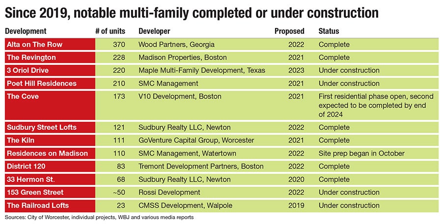 Smith later told WBJ the flood of delayed multi-family projects wasn’t limited to just Worcester, but was boosted by the fact some were rushing to have their projects submitted before the City of Worcester’s new inclusionary zoning rules went into effect.