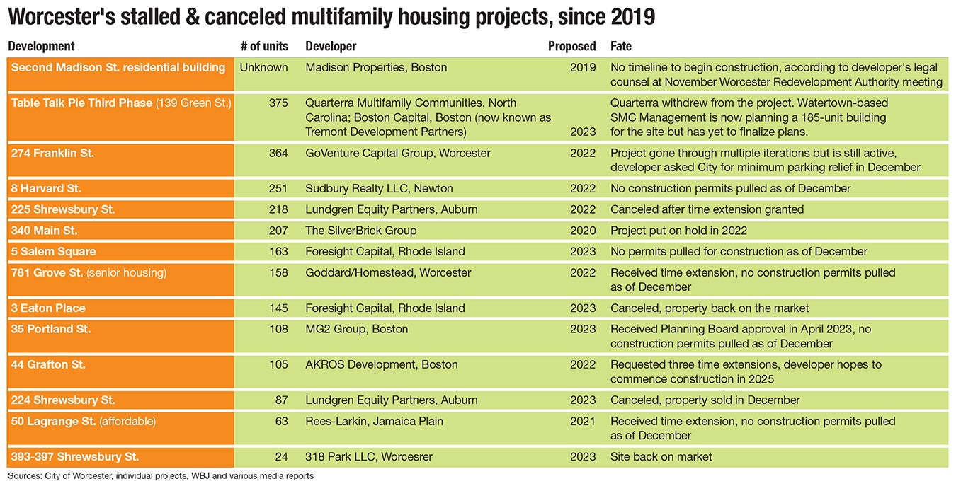 Some of Worcester’s proposed housing projects falling by the wayside isn’t helping the region’s housing crisis.