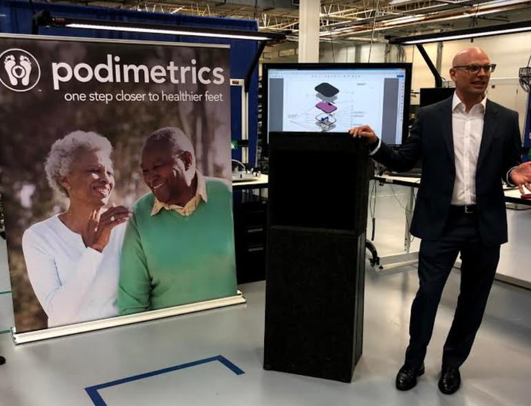Podimetrics makes a product called SmartMat for patients at risk for diabetic foot ulcers. A patient places his or her foot on the cellular-connected device for 20 seconds each day, transmitting data to the company to evaluate any needed treatment from a clinician. Foot ulcers can often progress to wounds and even amputations, the company said.