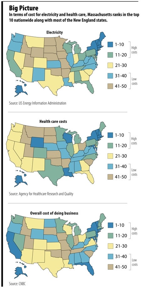 Electricity is another high-cost area. Only three states — Connecticut, New York and Hawaii — have higher commercial electricity costs, according to the U.S. Energy Information Administration’s monthly price report.