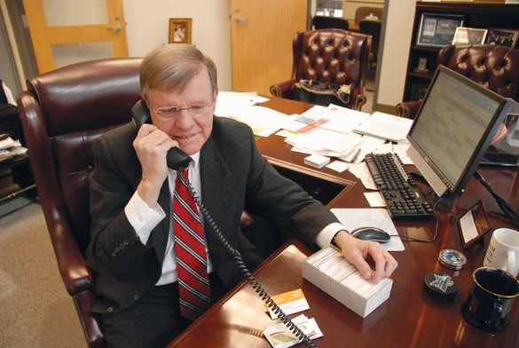He doesn’t have a Blackberry chock full of names, numbers and e-mail addresses. He doesn’t depend on his office e-mail program or LinkedIn to keep his contacts organized. Instead, there’s a collection of boxes in the top left-hand drawer of his desk that contain literally thousands of business cards.