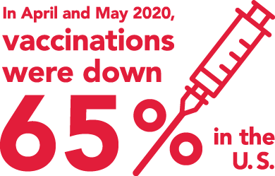 Dr. Patricia Toro, MD, MPH, and Associate Medical Director at Harvard Pilgrim Health Care, says “In April and May, we saw a 65% decrease in vaccines and immunizations compared to the same time period in 2019. While the numbers are back on the rise, we’re still not at pre-March levels. This trend is very troubling and could make the pandemic worse if it’s not addressed.”