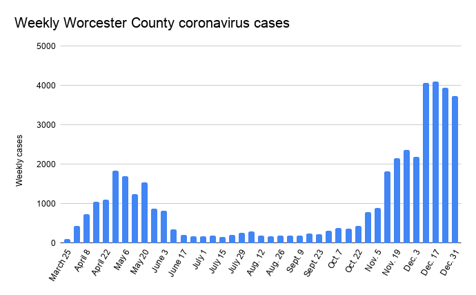 Worcester County will end the year with a slight dip in weekly COVID-19 cases but having surpassed 40,000 coronavirus cases.