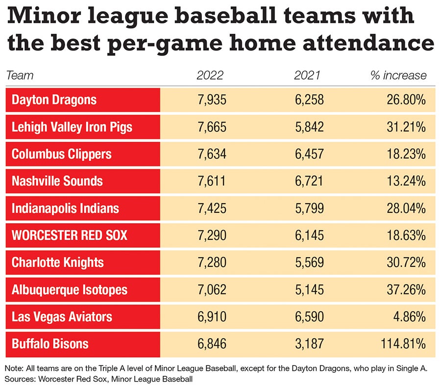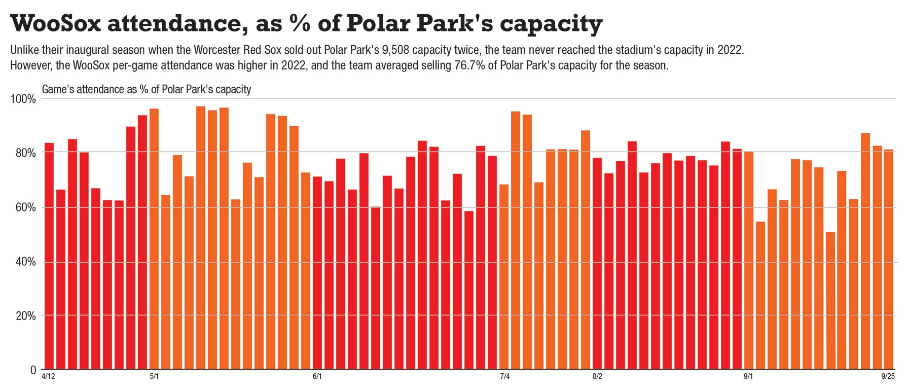 The Worcester Red Sox saw significant improvement in attendance in their second year at Polar Park, after finishing sixth overall in an inaugural season amid the challenges COVID presented in 2021.