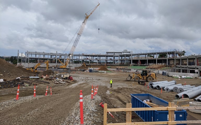 Smith and leading officials from the City of Worcester and the WooSox — who will play one more season in Pawtucket, R.I., if games are held — gave a media tour of Polar Park on Monday to show progress evident in various areas. Concrete has been poured for a 22-foot wall in right field, and a seating bowl is taking shape around the infield. Union Station is visible from the concourse behind where home plate will go.