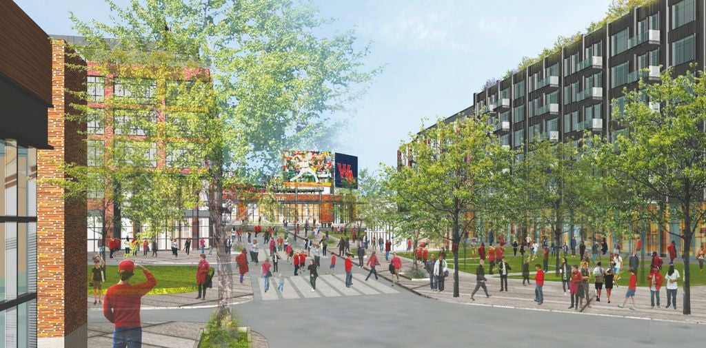 The planned on-site development surrounding the stadium from Boston firm Madison WG Holdings and developer Denis Dowdle has been changed to open in a number of phases, after the stadium opens in 2021.