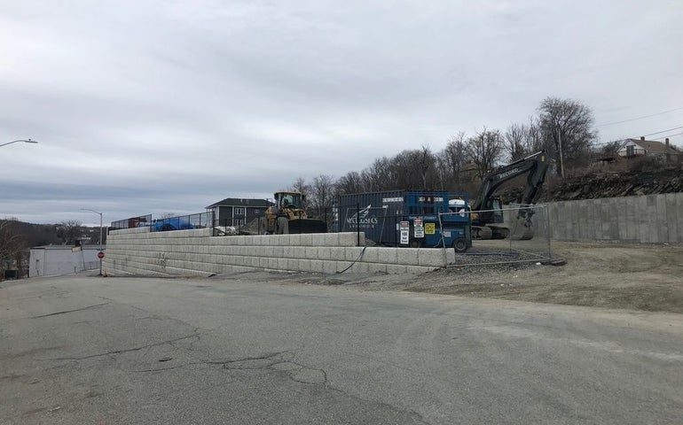 Those issues included a deteriorating retaining wall and a huge amount of ledge that had to be removed manually rather than blasting due to the proximity of residential buildings.