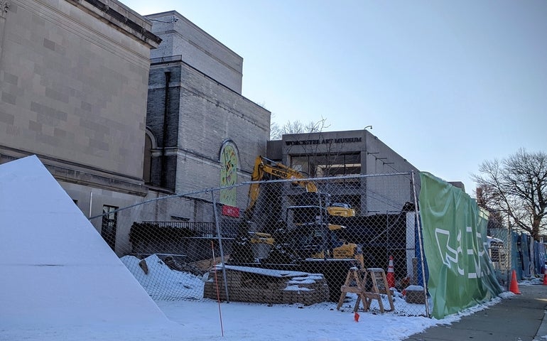 The Worcester Art Museum is demolishing and rebuilding its main entrance on Lancaster Street to make the plaza handicapped accessible.