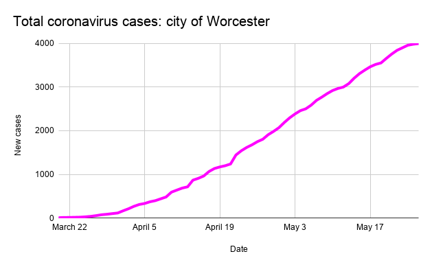 The City of Worcester has reported consistent numbers with very little signs of decline in coronavirus cases.