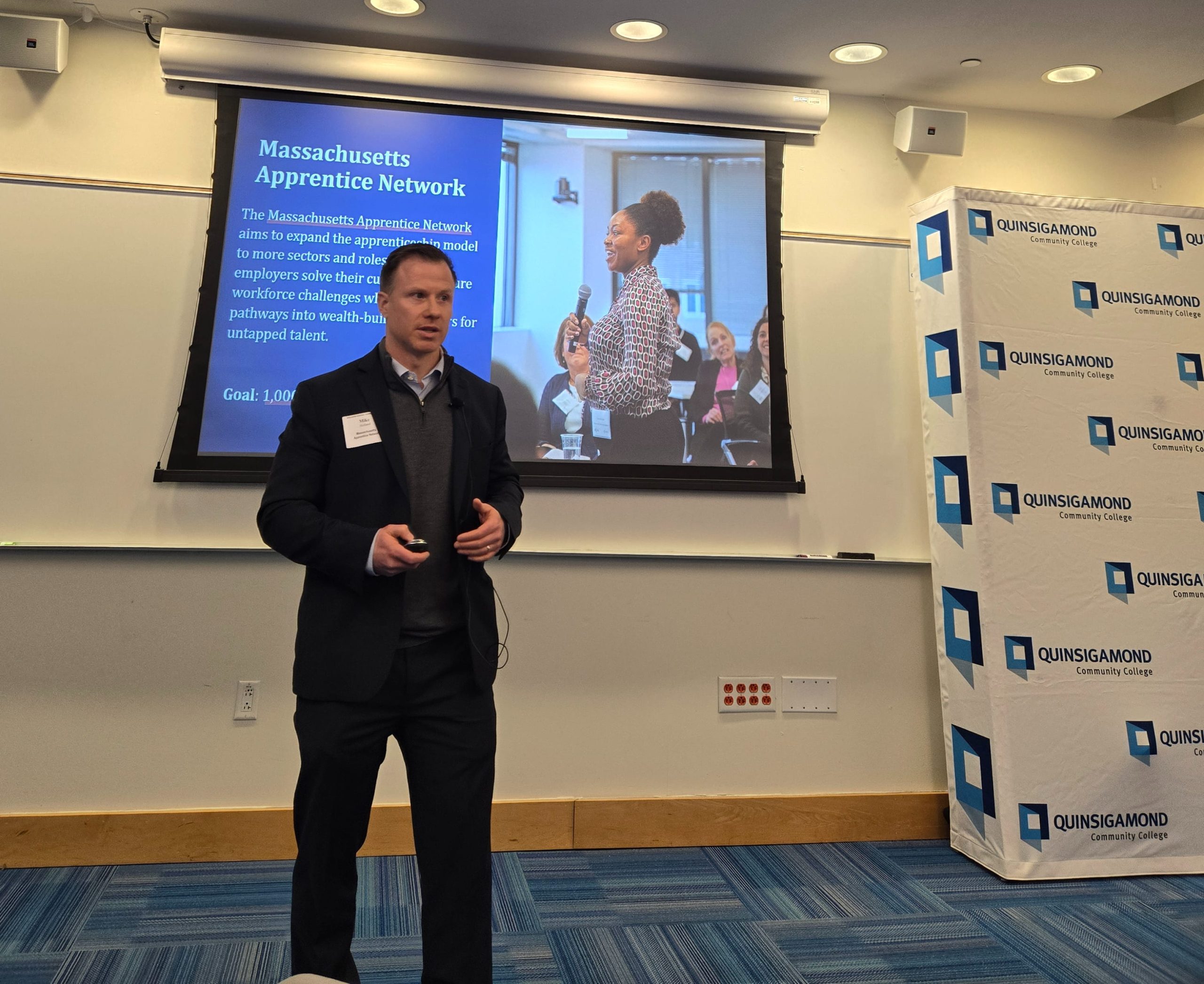 The Worcester Regional Chamber of Commerce has joined its Boston counterpart in becoming part of the Massachusetts Apprenticeship Network, which seeks to help employers develop the workforce talent they need.“These partnerships are so critical between our employers and those originating in our communities,” said Timothy Murray, Worcester chamber president and CEO. “We want to facilitate more opportunities for partnership.”The Massachusetts Apprenticeship Network is an initiative of the Greater Boston Chamber of Commerce Foundation, seeking to train available workers on the job at partner companies.Richard Gill, a journeyperson Swiss machinist at Tegra Medical, speaks at a Massachusetts Apprenticeship Network event. PHOTO | BRAD KANEIn 2022, the network expanded its reach from solely focused on the construction industry to additional industries such as health care and advanced manufacturing. Central Massachusetts businesses in the network include Franklin manufacturer Tegra Medical, Worcester-based Quinsigamond Community College, Worcester mental health provider Positive Behavior Supports, and Boston-based developer WinnCompanies, which is building multiple housing projects in Central Massachusetts.“The apprenticeship program is really awesome,” said Richard Gill, a journeyperson Swiss machinist at Tegra Medical, who went through the apprenticeship program. “To get paid while you are learning feels like a scam.”Gill spoke at a joint event held by the Worcester and Boston chambers to encourage more employers to join the apprenticeship network. About 80 advocates, business representatives, and education officials attended the Feb. 11 event at QCC.“We know how much turnover costs companies, and apprenticeships are a way to reduce turnover,” said Mike Holland, director of workforce development strategy for the Greater Boston Chamber Foundation.Mike Holland, director of workforce development strategy for the Greater Boston Chamber Foundation, encouraged companies to join the Massachusetts Apprenticeship Network during an event at Quinsigamond Community College. PHOTO | BRAD KANEThe network has supported more than 800 apprentices statewide, with a goal of reaching 1,000 by 2027. Of the 800 apprentices placed, 91% retained a position at their companies, according to the network’s data. Of the apprentices, 65% are women, 59% are people of color, and 76% are aged 18-34.Apprenticeships can help Massachusetts employers overcome the challenges of a stagnant workforce, Holland said. The state had a net loss of about 33,000 people from July 2024 to July 2025, and more residents are aged 60+ than under the age of 20.Immigration had been a key component in the state’s workforce growth, but that has been curtailed this year as the federal approach to immigration has changed, he said.“That faced headwinds in 2025, and I’m sad to say, it will face additional headwinds for the next three years,” Holland said.Brad Kane is editor of the Worcester Business Journal.