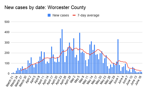 As of June 11, the city of Worcester has had a reported 5,068 coronavirus cases since the pandemic began. A weekly update is scheduled for late Thursday afternoon.
