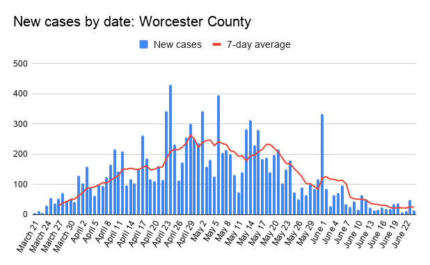 As of June 18, the City of Worcester reported 47 new coronavirus cases bringing its total to 5,115. An update on the city’s coronavirus numbers was not yet available Thursday morning.