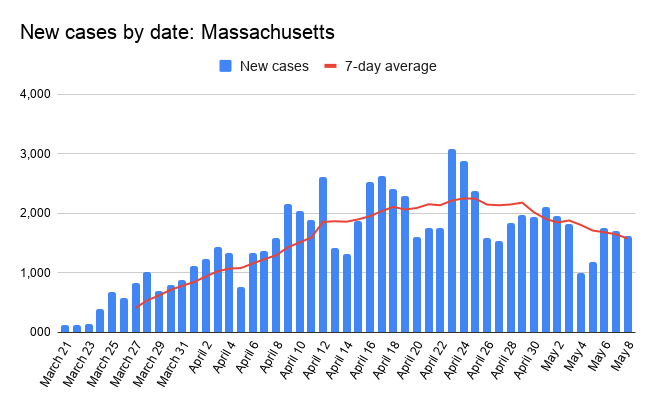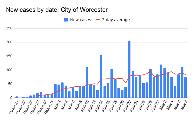The city of Worcester had an increase in cases by 75 on Friday, or 2%, contributing to the total 2,773.