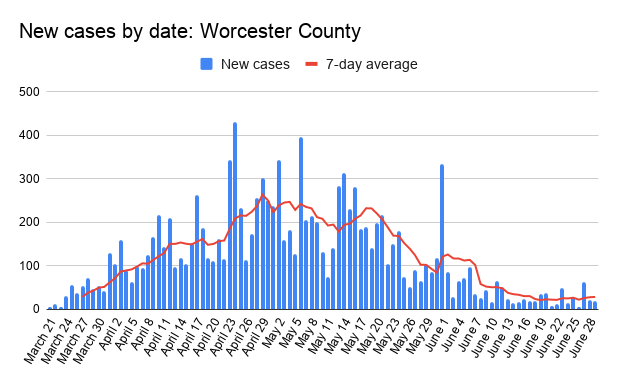 As of June 25, the City of Worcester reported 57 new coronavirus cases, adding to the 5,172 overall since the pandemic began. The city’s next coronavirus update will be made on Thursday.