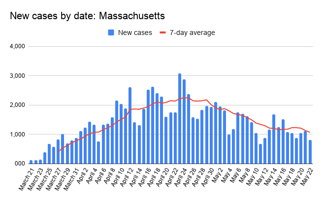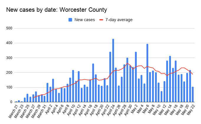 New Worcester County and statewide totals Friday were each the lowest day-to-day totals since May 11.