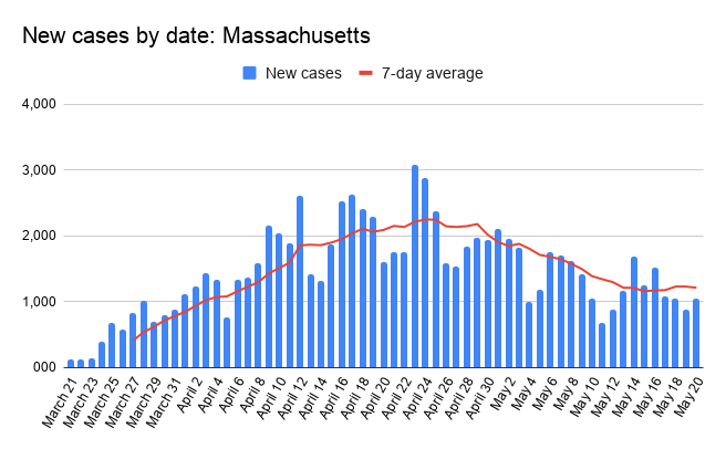 Across Massachusetts, another 1,045 cases were reported, bringing the state’s total to 88,970. Another 128 recorded deaths brought the toll so far to 6,066.