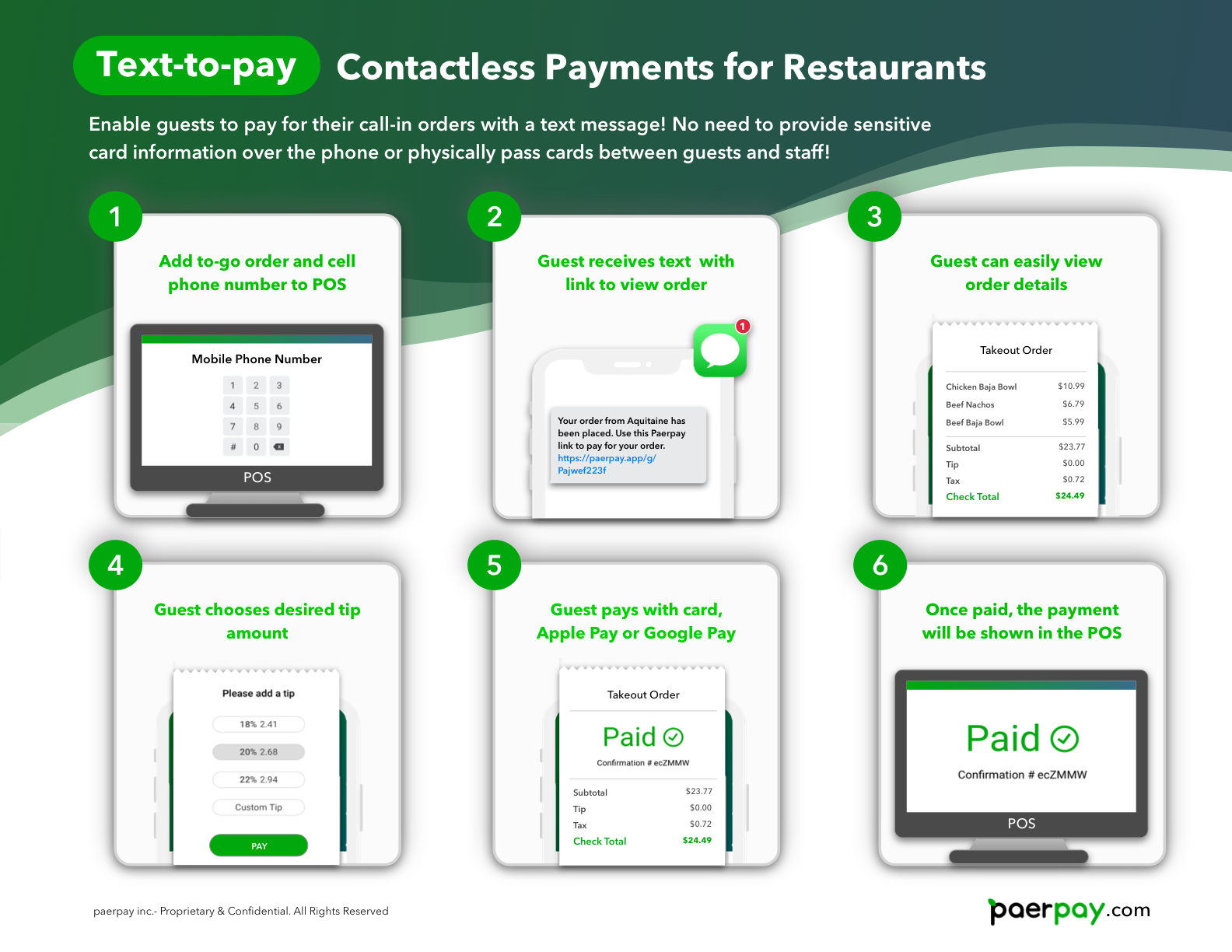 The old version of the app allowed diners to view, pay and split their bills without having to interact with their server, and paerpay was testing at restaurants like Legal Sea Foods and those from Niche Hospitality Group of Worcester. In the new version, when people order over the phone for their delivery or takeout, they are sent a text where they can review their bill and pay it through the app. This avoids the situations where customers either have to give out their credit card information over the phone or interact with a restaurant takeout or delivery employee by handing over cash or their credit cards, which violates social distancing guidelines.