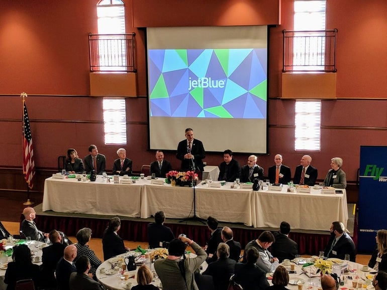 Hayes recalled the celebration put on by Worcester Regional Airport when jetBlue announced its first Worcester flights in 2013, complete with a marching band and honor guard. He called the Massachusetts Port Authority, which owns and operates the airport, a great partner.
